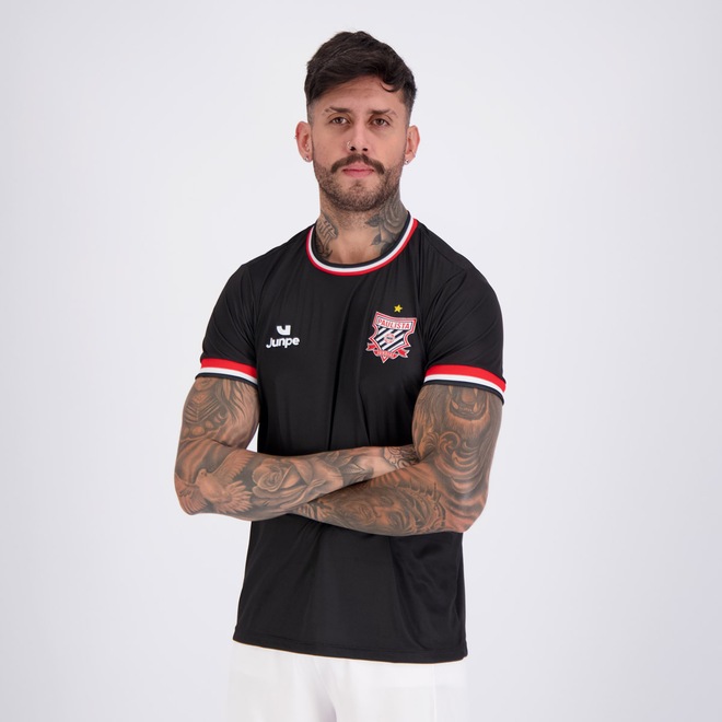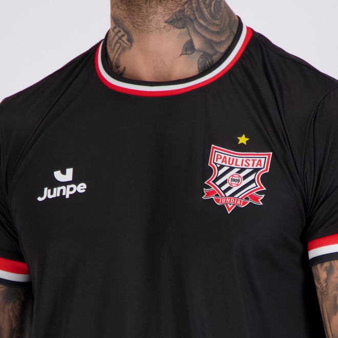 Composição: 100% Poliéster Clube: Paulista de Jundiaí Cor Predominante: Preta Indicado para: Treino Gênero: Masculino Origem: Nacional Escudo: Aplicado Manga: Curta Gola: Careca Dimensões aproximadas (A x L): P: 67 x 46 cm M: 71 x 50 cm G: 72 x 52 cm GG: 74 x 57 cm EG (G1): 78 x 61 cm