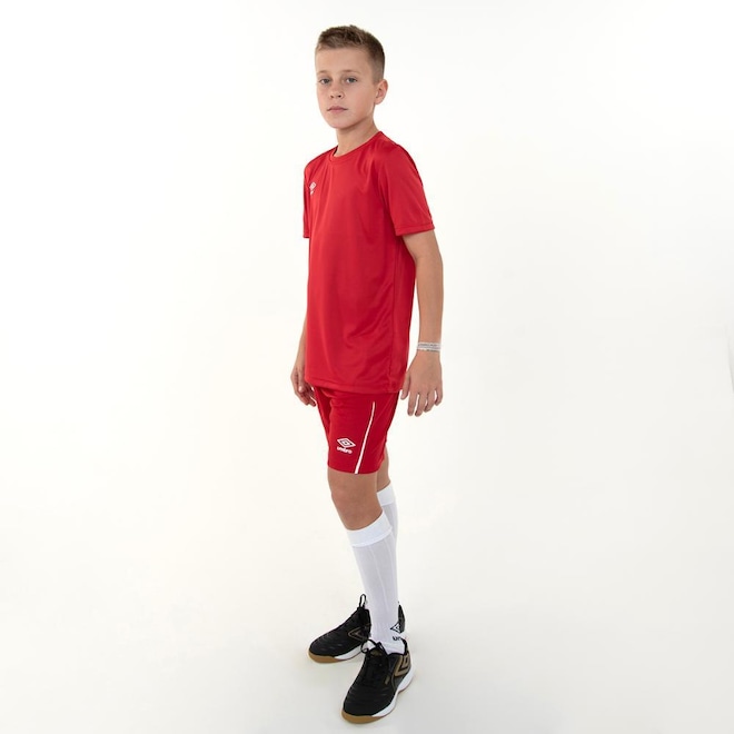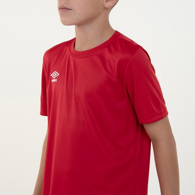 Camisa juvenil confeccionada em 100% poliéster. Modelagem regular com manga curta. Possui gola careca em ribana e logo Umbro em termo aplicado na parte frontal direita superior.ref: M15NIJ