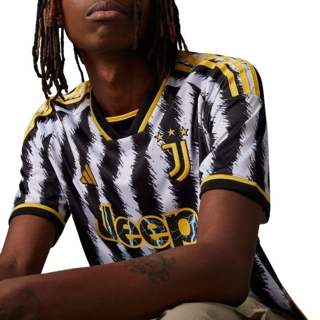 Chamando todos os torcedores da Juve. A camisa 1 23/24 da Juventus combina estilo nostálgico com tecnologia esportiva moderna. Com raízes na herança do clube, a camisa é inspirada nos uniformes vintage e . O escudo do clube bordado e os detalhes em amarelo completam o look de destaque. Confeccionada em poliéster reciclado leve, a camisa conta com tecido AEROREADY antissuor e apliques em malha elástica na lateral para máximo conforto dentro e fora de campo. Mais de 120 anos de orgulho pelo time que é um dos maiores do mundo, vestindo uma camisa autêntica de alta performance.ref: M0YYC2
