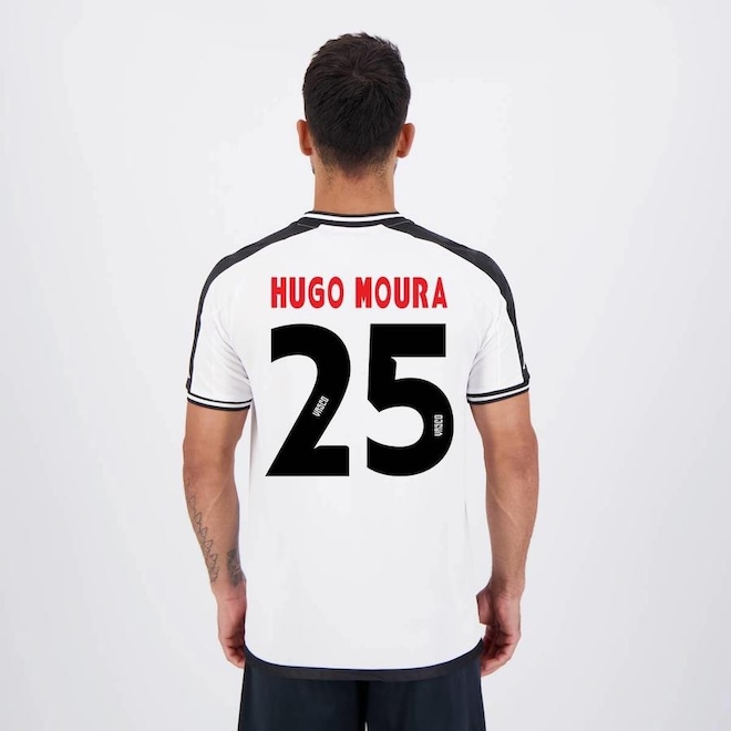 Hugo Moura Arruda da Silva, mais conhecido como Hugo Moura, é um jogador de futebol brasileiro que atua como volante. Suas principais características incluem; a força e imposição física no meio-de-campo, bola aérea e desarme.Inspirado em modelos usados pelo Cruzmaltino entre 1997 e 2000, anos em que o clube conquistou célebres conquistas, a nova camisa traz o mote do Vasco ser o "Time da Virada", que ficou eternizado nas inesquecível vitória contra o Palmeiras, para levantar a Copa Mercosul de 2000. Com design na cor branca, a nova camisa traz a famosa faixa diagonal preta cortando o manto na frente, com contorno vermelho, como o da época. Já nas mangas, são vistas faixas pretas, como as da camisa de 1999. Além disso, o uniforme traz textura que reproduz o visual "quadriculado" utilizado na camisa de 2000.