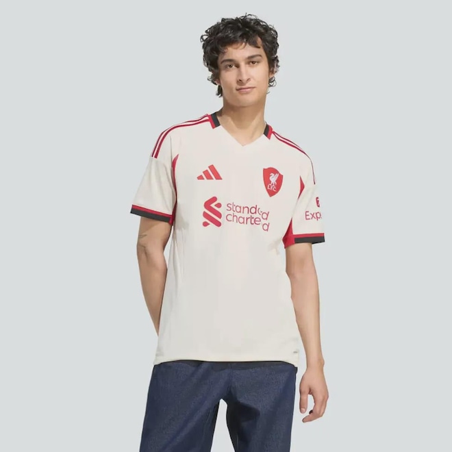 M. SALAHMohamed Salah, o “Rei do Egito”, é pura velocidade e precisão. Com dribles curtos e finalização letal, transforma cada arrancada em ameaça. Inteligente, incansável e decisivo, encanta torcedores e aterroriza defesas, deixando sua marca em cada jogo.TecnologiaAeroReady: Sistema que controla o excesso de umidade do corpo, garantindo a rápida secagem do suor durante os exercícios.Composição: 100% PoliésterCor predominante: Off-whiteModelo: TorcedorClube: LiverpoolGênero: MasculinoOrigem: ImportadaEscudo: BordadoManga: CurtaGola: VDimensões aproximadas (A x L):P (S): 72 x 48 cmM (M): 74 x 52 cmG (L): 76 x 55 cmGG (XL): 78 x 60 cmEG (2XL): 81 x 66 cmEEG (3XL): 84 x 73 cm