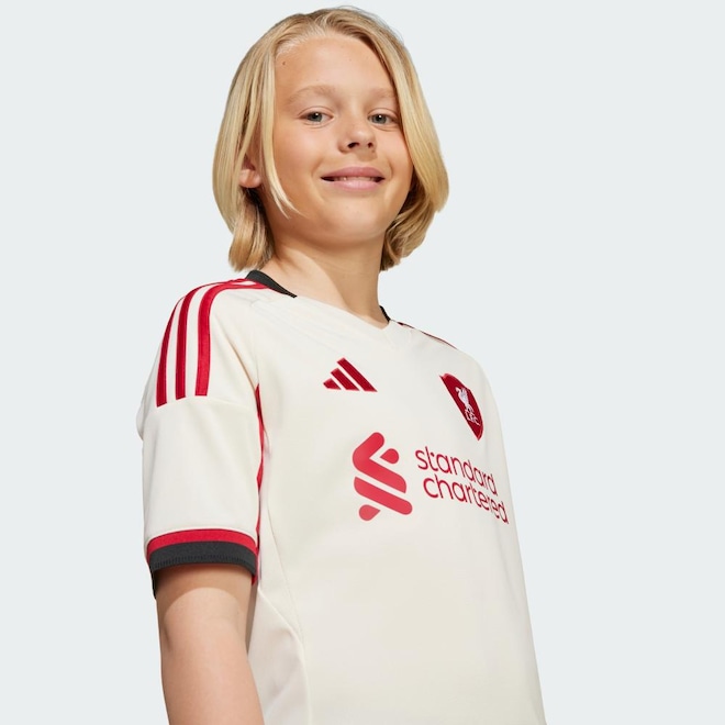 Na temporada 25/26, todo lugar é Anfield. Criada para representar o icônico estádio do Liverpool FC em dias de jogos fora de casa, esta camisa de futebol adidas para infantil exibe um brasão feito especialmente, cujo formato foi inspirado na empena arqueada no topo da antiga arquibancada principal do estádio. O AEROREADY, que controla a umidade, e o tecido macio se combinam para manter os torcedores em viagem confortável. A tonalidade esbranquiçada será familiar para os Reds que conhecem sua história.