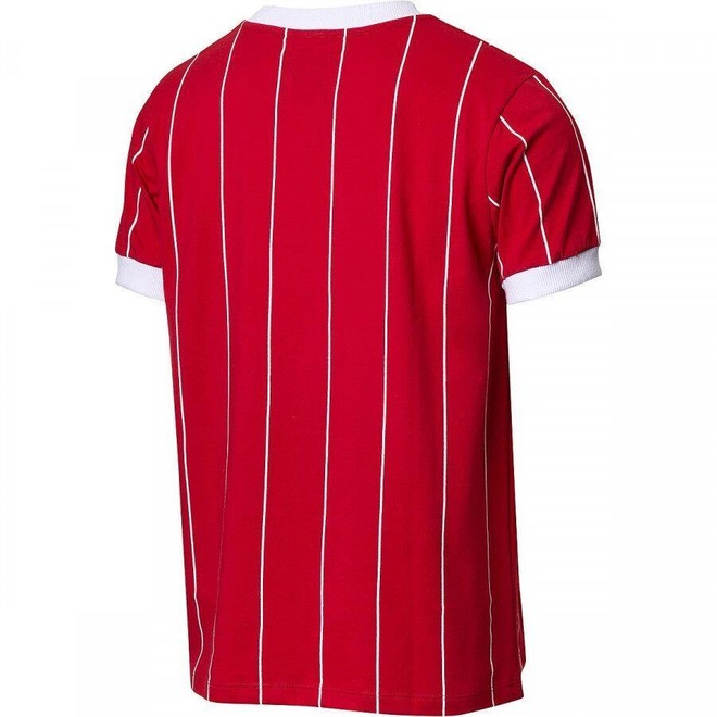 Camisa clássica usada pelo gigante inglês Liverpool em 1984, ano em que o clube conquistou a Uefa Champions League, o maior e mais importante torneio de clubes do mundo, batendo a Roma, nas penalidades em pleno Estádio Olímpico. Produzida com tecido de algodão e listras em silk, que oferece tradição e conforto. O escudo retrô bordado mantém a originalidade da peça. Uso casual, indicado para momentos de lazer e ir ao estádio.