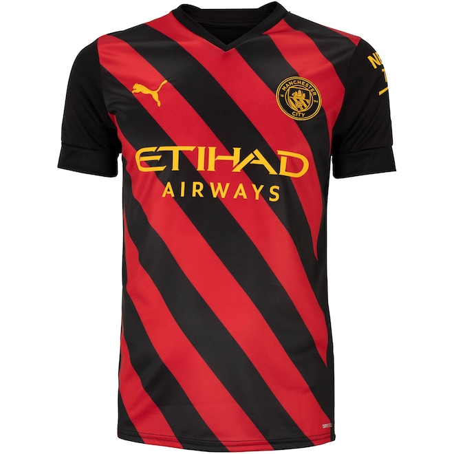 Ainda conta com mangas curtas, o logo da marca é bordado, mangas curtas e sua gola é em “V”, canelada e tem tira interna que protege do atrito junto à pele. Compre já sua camisa Manchester City II 22/23 Puma!