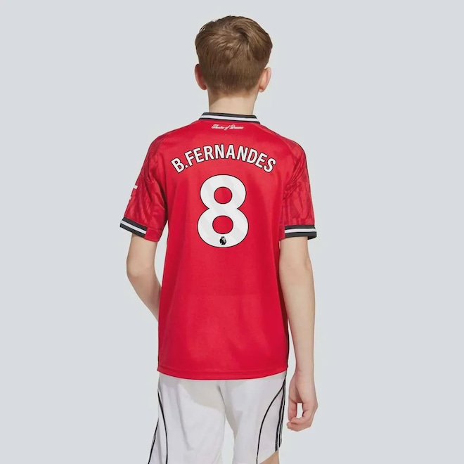 B. FernandesBruno Miguel Borges Fernandes é um jogador de futebol português que atua como meio-campista. Suas principais características são: técnica, drible, chute de média distância, finalização, cobrança de faltas, passe final e passe perfeito para seus companheiros.TecnologiaAeroready: Sistema que controla o excesso de umidade do corpo, garantindo a rápida secagem do suor durante os exercícios.Composição: 100% PoliésterCor predominante: VermelhaClube: Manchester UnitedModelo: TorcedorOrigem: ImportadaGênero: UnissexIdade: JuvenilEscudo: BordadoManga: CurtaGola: VDimensões aproximadas (A x L):08 ANOS: 51 x 35 cm10 ANOS: 54 x 38 cm12 ANOS: 59 x 43 cm14 ANOS: 65 x 46 cm16 ANOS: 71 x 49 cm