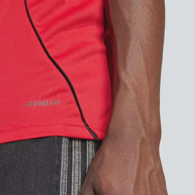 Tecnologia AEROREADY: Sistema que controla o excesso de umidade do corpo, garantindo a rápida secagem do suor durante os exercícios. Composição: 100% Poliéster Cor predominante: Vermelha Modelo: Torcedor Clube: Manchester United Gênero: Masculino Origem: Importada Escudo: Bordado Manga: Curta Gola: V Dimensões aproximadas (A x L): P (S): 72 x 48 cm M (M): 73 x 52 cm G (L): 76 x 55 cm GG (XL): 78 x 60 cm EG (2XL): 81 x 66 cm EEG (3XL): 84 x 73 cm