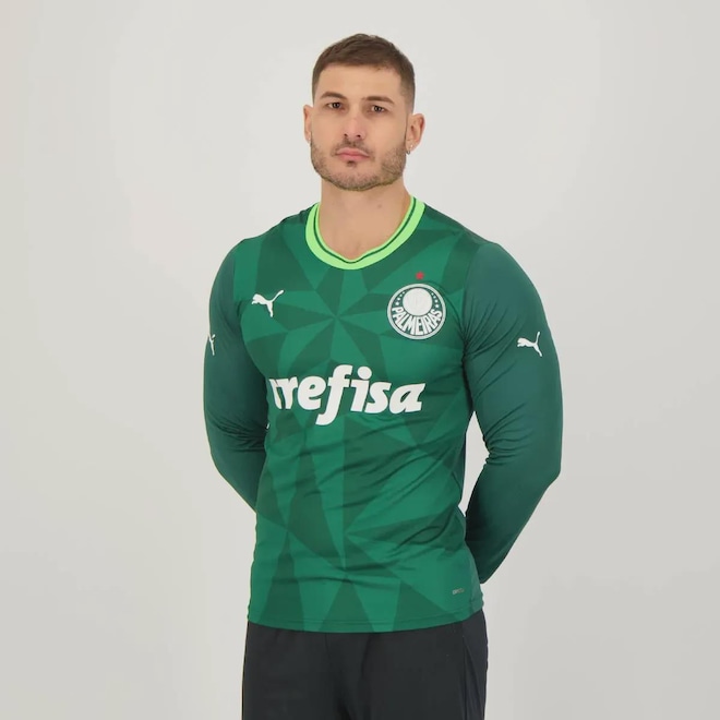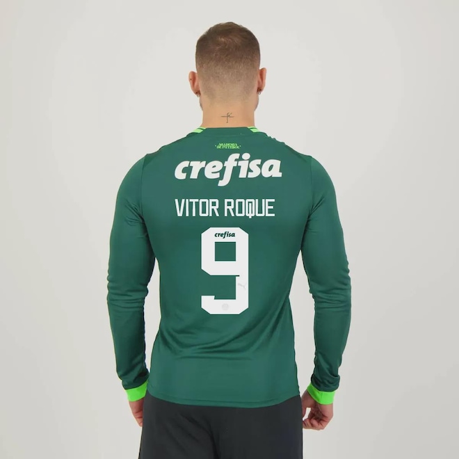 Vitor Roque é uma promessa do futebol brasileiro, com habilidade excepcional, velocidade e visão de jogo apuradas. Seu estilo é dinâmico, driblador e letal na finalização. Jovem, mas com maturidade em campo, já encanta torcedores com seu talento imbatível.Bem-vindos à Terceira Academia! O manto titular do Verdão para a temporada 2023 celebra a Primeira e a Segunda Academia, um passado vitorioso com times que marcaram época nas décadas de 1960 e 1970 e engrandece as conquistas atuais. A camisa é inspirada no uniforme utilizado pela Segunda Academia na conquista do Campeonato Brasileiro de 1973. A peça possui grafismos geometricos que formam uma estrela no peito, representando as vitórias recentes e traz gola retílinia e punho idênticos ao uniforme utilizado na década de 70 com um toque de modernidade na cor verde claro, afinal uma academia inspira outra!