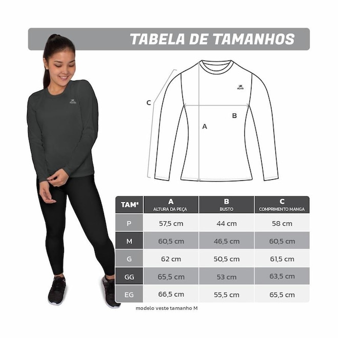 É durável, fácil de lavar, seca com facilidade amassando pouco, e está disponível nos tamanhos do P ao EG A Camisa Dry Basic LS FPS 50 da Muvin é ideal para a prática de atividades esportivas diversas, como corrida, caminhada, ginástica, treino funcional, práticas de pilates e yoga, bem como também em atividades fitness e na academia.