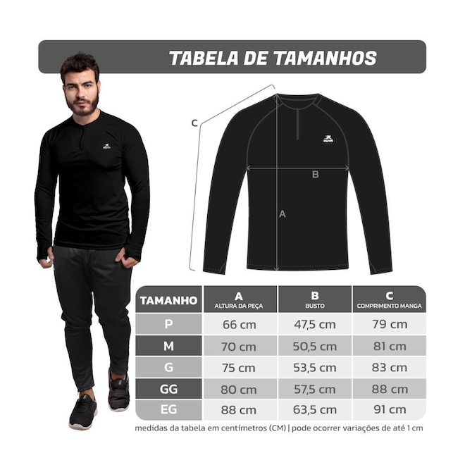 Camisa Manga Longa Futebol ZM FPS UV50+ - Masculino Proteção UV50+: Jogue com segurança sob o sol graças à proteção UV50+ da nossa camisa, mantendo sua pele protegida durante toda a atividade. Conforto Térmico: Sinta-se confortável em qualquer clima com a excelente respirabilidade e isolamento térmico proporcionados pelo poliéster de alta qualidade. Secagem Rápida: Esteja sempre preparado para a próxima atividade com a tecnologia de secagem rápida que facilita a manutenção e o uso diário. Leve e Resistente: Movimente-se com liberdade e confiança, pois nossa camisa combina leveza e alta durabilidade, perfeita para treinos intensos e competições. Ajuste Ideal: Disponível em tamanhos que vão do P ao EG, com um design compacto e ajuste perfeito que se adapta ao seu corpo para máximo conforto. Descubra a camisa manga longa futebol ZM FPS UV50+ da Muvin Esportes, projetada para oferecer conforto, proteção e desempenho superiores. Disponível nos tamanhos P, M, G, GG e EG, e na cor preto, esta camisa é ideal para atletas que buscam qualidade e estilo. Fabricada em poliéster de alta qualidade, nossa camisa proporciona excelente respirabilidade e conforto térmico, mantendo você fresco e confortável em qualquer clima. A proteção UV50+ garante que sua pele esteja sempre protegida contra os raios nocivos do sol, permitindo que você jogue com segurança em qualquer condição. A tecnologia de secagem rápida facilita a manutenção e garante que a camisa esteja sempre pronta para o uso. Leve e resistente, esta camisa permite uma liberdade de movimento excepcional, perfeita para treinos intensos e competições. O ajuste perfeito e o design compacto garantem que a camisa se adapte ao seu corpo, proporcionando máximo conforto e desempenho. Para manter sua camisa em ótimo estado, recomendamos lavar à máquina em ciclo delicado e secar à sombra. Evite o uso de alvejantes para preservar a cor e a integridade do material. Com a Muvin Esportes, você estará sempre pronto para alcançar novos objetivos e superar seus limites. Garantia contra defeito de fabricação de três meses. Mediante apresentação de nota fiscal.