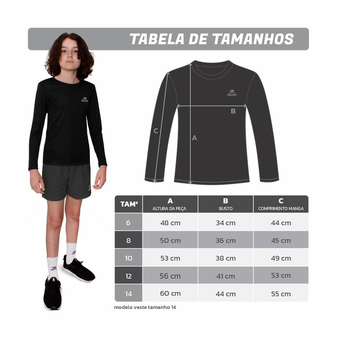 MATERIAL LEVE E DE QUALIDADE: Camisa 100% poliéster, com costura reforçada cujos pontos não estouram mesmo quando o tecido é esticado. É durável, fácil de lavar, seca com facilidade amassando pouco, e está disponível nos tamanhos 6, 8, 10, 12 e 14