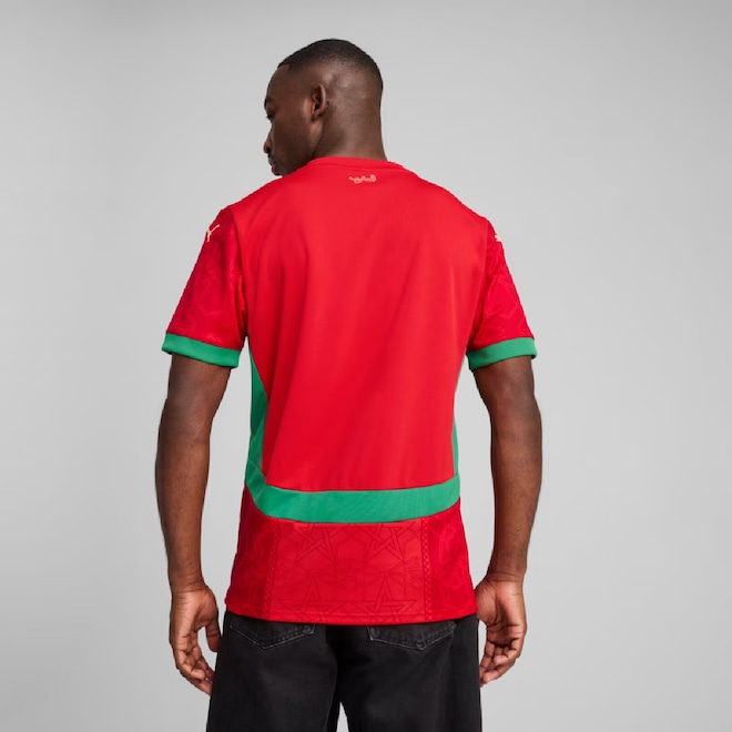 - Sobre o produto - Camisa Marrocos Puma 2025/2026 Uniforme 1 Torcedor - Masculino - Mostre seu orgulho pelos Leões de Atlas com este novo uniforme criado pela PUMA. Com o escudo da seleção nacional, logo do patrocinador e painéis laterais em mesh, ele é perfeito para todos os torcedores apaixonados. Use e sinta a energia do seu time! - dryCELL: Tecnologia de desempenho projetada para absorver a umidade do corpo e mantê-lo livre de suor durante o exercício. - Feito com material 100% reciclado, exceto acabamentos e decorações. - Modelagem regular - Material jacquard dupla face - Comprimento regular - Gola redonda - Manga curta - Painéis laterais em mesh - Pequenas inserções laterais em mesh cruzando o painel lateral - Escudo do FRMF do lado esquerdo do peito e logo PUMA do lado direito - Produto Oficial Licenciado Puma - Medidas Aproximadas ( A x L ): - P (S):71 x 49 cm - M (M): 73 x 53 cm - G (L): 75 x 57 cm - GG (XL): 77 x 63 cm - ref: M174OL