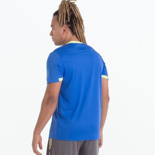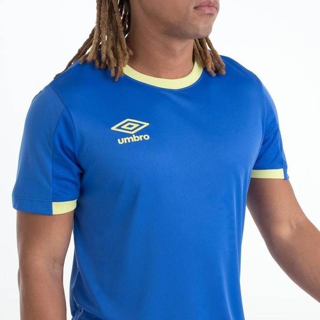 Camisa masculina confeccionada em 100% poliéster. Modelagem regular com gola careca contrastante em ribana e manga curta com detalhe contrastante em ribana no punho. Possui recorte nas mangas e costas em tecido Mesh para maior respirabilidade, acabamento em pesponto na gola e logo Umbro em termotransfer aplicado na parte frontal superior direita.ref: M11V1D