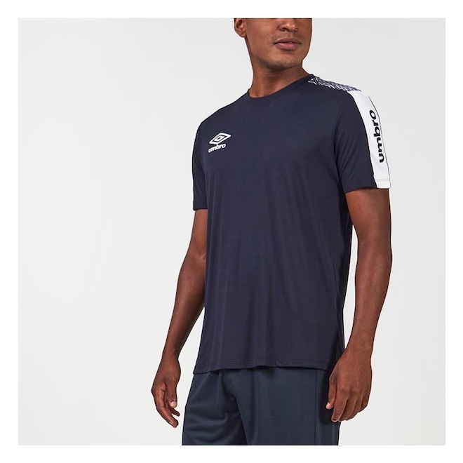 Camiseta masculina confeccionada em tecido com fio tecnológico que contém secagem rápida, proteção UV 15+, função antitranspirante e leveza. Modelagem regular com gola careca e manga curta. Possui recorte nos ombros e mangas com estampa Dynamic Umbro Letter sublimada, parte traseira também em tecido tecnológico com as mesmas características e logo Umbro em termotransfer aplicado na parte frontal superior direita.ref: M103HT