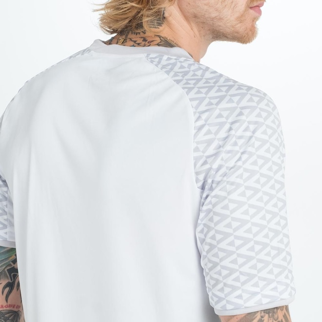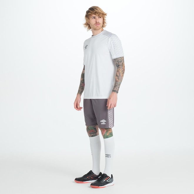 A camisa Umbro Pro 5 é confeccionada em tecido 100% poliéster. Ela possui gola careca, detalhe de arte gráfica sublimada nas mangas e ombros e barra aplicada na manga. Logo Umbro na parte frontal.ref: M1418Z