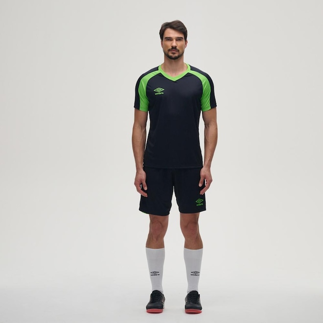 Camisa Masculina Umbro Raptor confeccionada em malha 100% poliéster, indicada para a prática de esportes. Modelagem regular com gola V transpassada em ribana e manga curta raglan. Camisa Masculina Umbro Raptor Possui recortes contrastantes em mesh nas mangas para maior respirabilidade e logo Umbro em termo à base dágua aplicado na parte frontal direita superior, Camisa Masculina Umbro Raptor garante melhor performance.