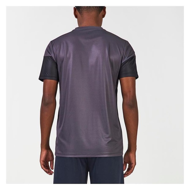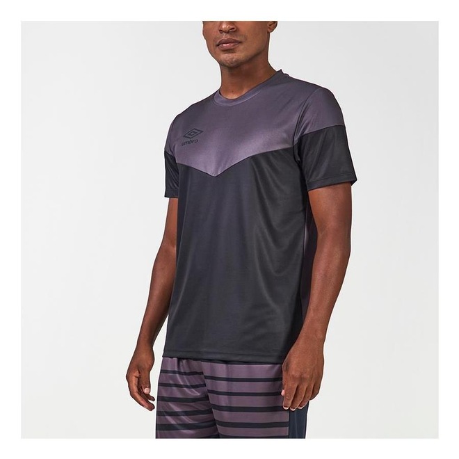 Camisa masculina confeccionada em 100% poliéster. Modelagem regular com manga curta e gola careca em ribana. Possui recorte frontal em cor contrastante, acabamento de pesponto na gola e logo Umbro em termotransfer aplicado na parte frontal superior direita. ,GRAFITEref: M113RD