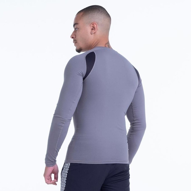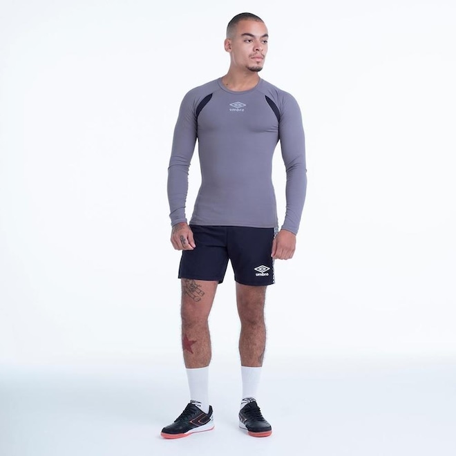 Camisa térmica masculina confeccionada em poliamida e elastano. Modelagem slim fit, mais ajustada ao corpo, com manga longa raglan. Possui gola careca, recorte em Mesh nas cavas para maior respirabilidade, logo Umbro refletivo na manga direita e logo Umbro refletivo centralizado na parte frontal superior.ref: M11X0D