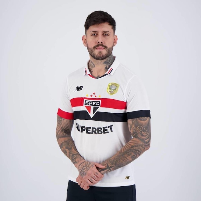 Camisa do São Paulo I 2024 com Patrocínio Patch Campeão Copa do Brasil 2023 New Balance - Masculina