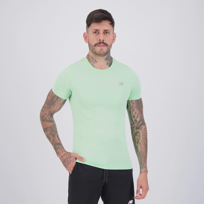 Tecnologia NB Dry: Auxilia o tecido a eliminar a umidade provocada pela transpiração, de modo a manter o corpo seco e fresco. Composição: 100% Poliamida Cor predominante: Verde Indicado para: Treino Gênero: Masculino Origem: Nacional Logo: Estampada Manga: Curta Gola: Careca Dimensões aproximadas (A x L): P: 68 x 44 cm M: 70 x 46 cm G: 72 x 48 cm GG: 74 x 50 cm
