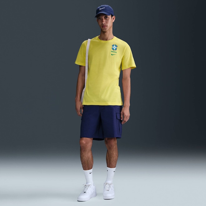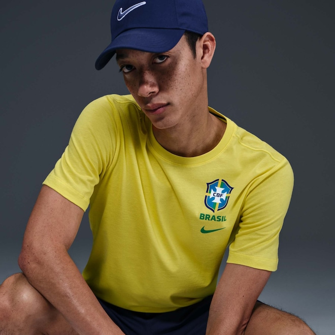 Com o tradicional escudo da Seleção estampado no peito, esta camiseta Nike em algodão homenageia a essência do futebol brasileiro.