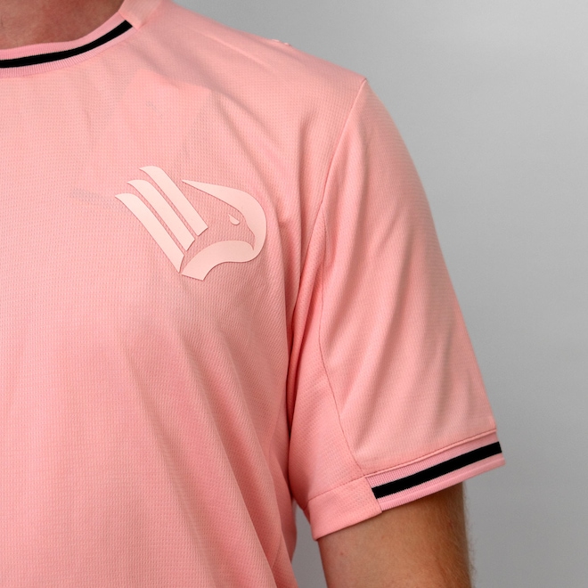 Visual All Pink Tonal: O lendário rosa do clube é trabalhado em uma estética tom sobre tom, conferindo um toque elegante e moderno perfeito para dentro e fora de campo.