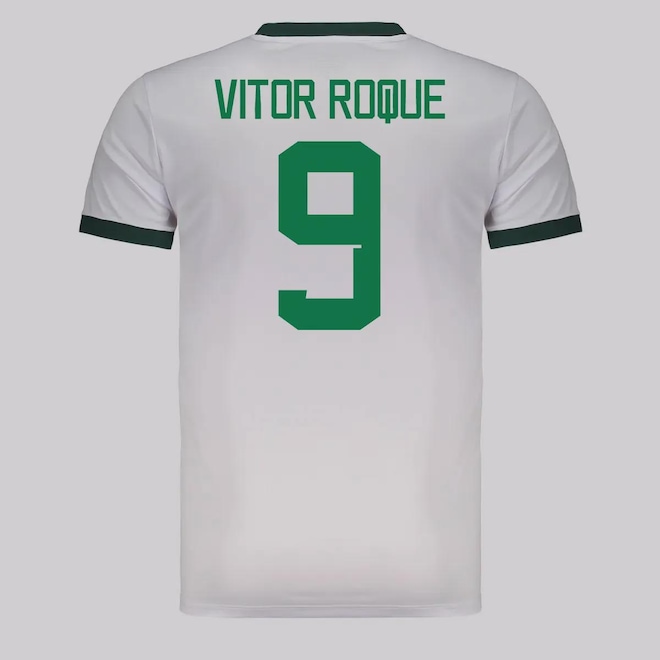 VITOR ROQUEVitor Roque é uma promessa do futebol brasileiro, com habilidade excepcional, velocidade e visão de jogo apuradas. Seu estilo é dinâmico, driblador e letal na finalização. Jovem, mas com maturidade em campo, já encanta torcedores com seu talento imbatível.Composição: 100% PoliésterCor predominante: BrancaIndicada para: CasualGênero: MasculinoOrigem: NacionalClube: PalmeirasEscudo: EstampadoManga: CurtaGola: CarecaDimensões aproximadas (A x L):P: 71 x 51 cmM: 73 x 53 cmG: 75 x 55 cmGG: 77 x 57 cm