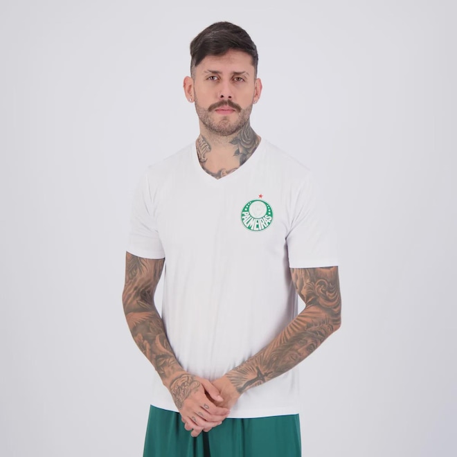 Composição: 100% PoliésterCor predominante: BrancaIndicada para: CasualGênero: MasculinoOrigem: NacionalClube: PalmeirasEscudo: EstampadoManga: CurtaGola: VDimensões aproximadas (A x L):P: 68 x 51 cmM: 70 x 53 cmG: 72 x 55 cmGG: 74 x 57 cm