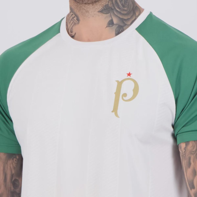 Composição: 100% PoliésterCor predominante: BrancaIndicada para: CasualGênero: MasculinoOrigem: NacionalClube: PalmeirasEscudo: EstampadoManga: CurtaGola: CarecaDimensões aproximadas (A x L):P: 69 x 52 cmM: 71 x 54 cmG: 73 x 56 cmGG: 75 x 58 cm