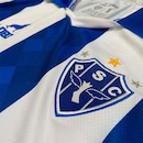 O manto apresenta uma elegante gola retilínea e punhos azuis, detalhes que remetem aos uniformes históricos e reforçam o vínculo com a tradição. O tecido frontal em jacquard com sublimação garante caimento perfeito e tecnologia avançada, unindo conforto e modernidade.
