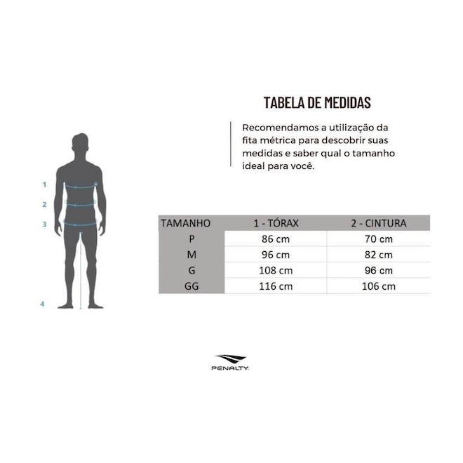 A camisa Penalty masculina é de gola careca, canelada e com tira interna em tecido que ajuda a diminuir o atrito de contato com a costura.