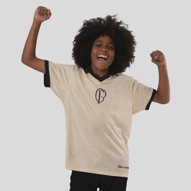 Composição: 100% PoliésterCor predominante: BegeEscudo: EmborrachadoIndicado para: CasualTime: CorinthiansGênero: UnissexIdade: JuvenilOrigem: NacionalManga: CurtaGola: Polo, com corte em VDimensões aproximadas (A x L):08 ANOS: 55 x 42 cm10 ANOS: 56 x 45 cm12 ANOS: 59 x 46 cm14 ANOS: 61 x 48 cm16 ANOS: 63 x 50 cm