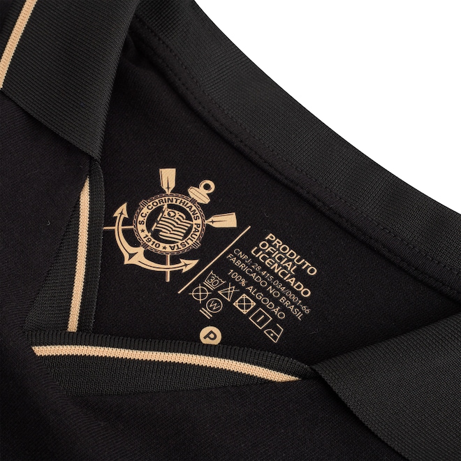 Ideal para quem valoriza tradição e estilo, a Polo Corinthians Gold Retilinea traz gola canelada, escudo bordado e tecido confortável em algodão, tudo com o selo de licenciamento oficial do clube.