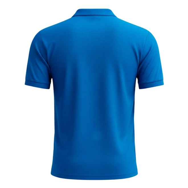 Seu design clássico com gola polo e abotoamento adiciona um toque refinado ao visual esportivo, enquanto o escudo do Cruzeiro no peito reforça a identidade celeste.