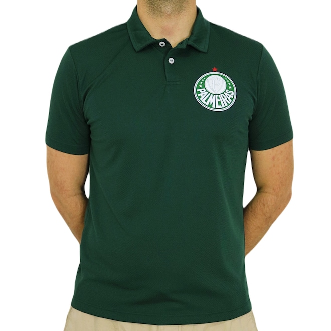 Produzida em 100% poliéster, com gola polo, na cor verde e o símbolo da Sociedade Esportiva Palmeiras estampado na altura do peito.
