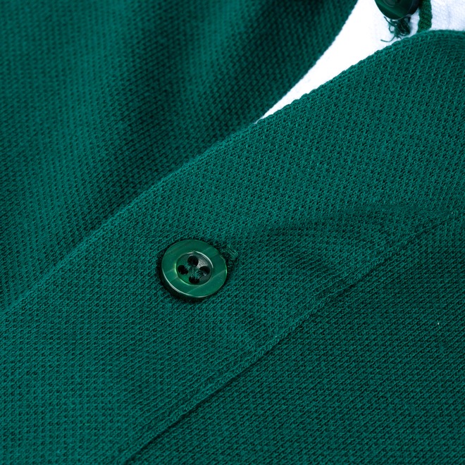 Sua gola é polo ajustada por botões com tira interna em tecido que ajuda a diminuir o desconforto do atrito da costura.
