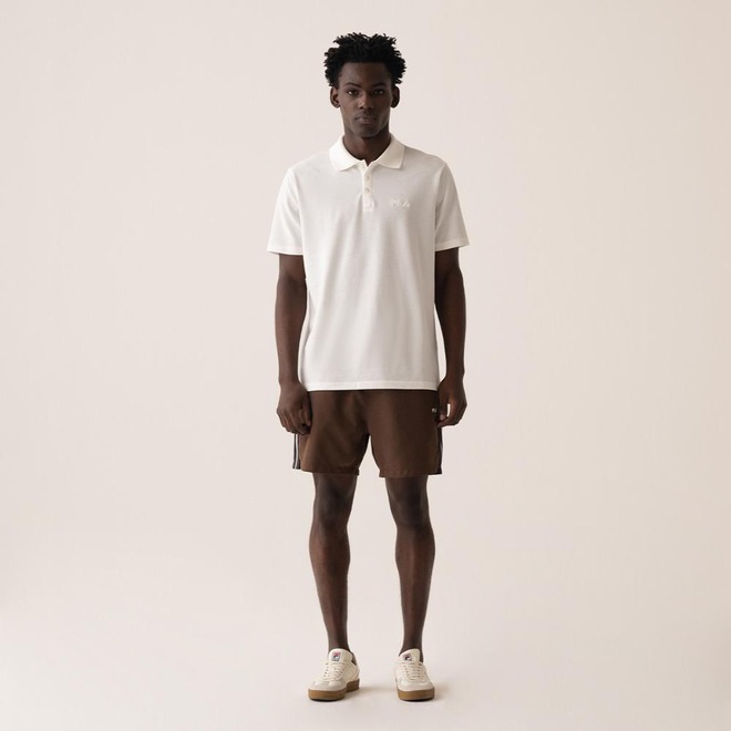 Camisa Polo masculina confeccionada em malha piquet de algodão peruano. Modelagem regular com gola polo em ribana e manga curta. Possui peitilho com 3 botões caseados e logo Fila Letter bordado na parte frontal esquerda superior.