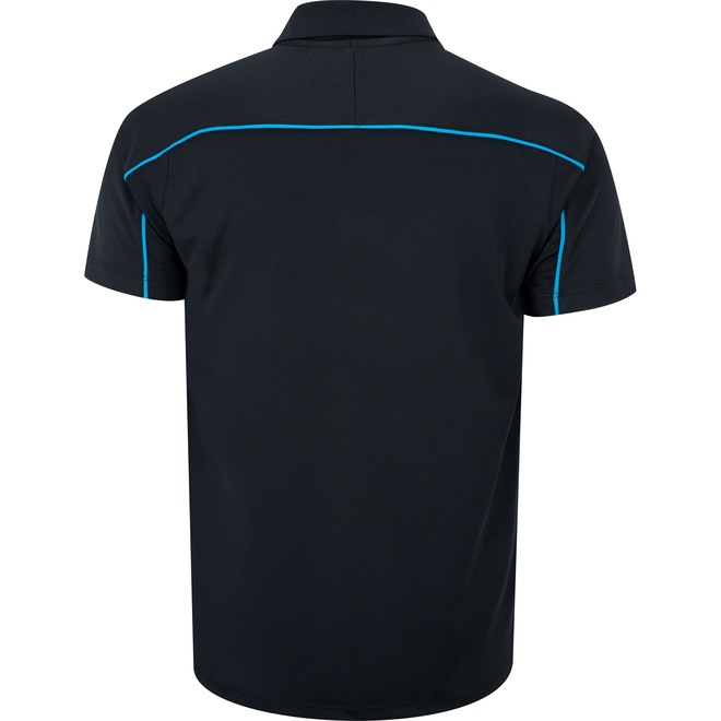 De mangas curtas, com gola polo e tira interna em tecido que ajuda a diminuir o atrito de contato com a costura.