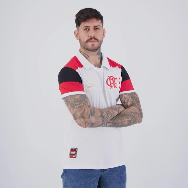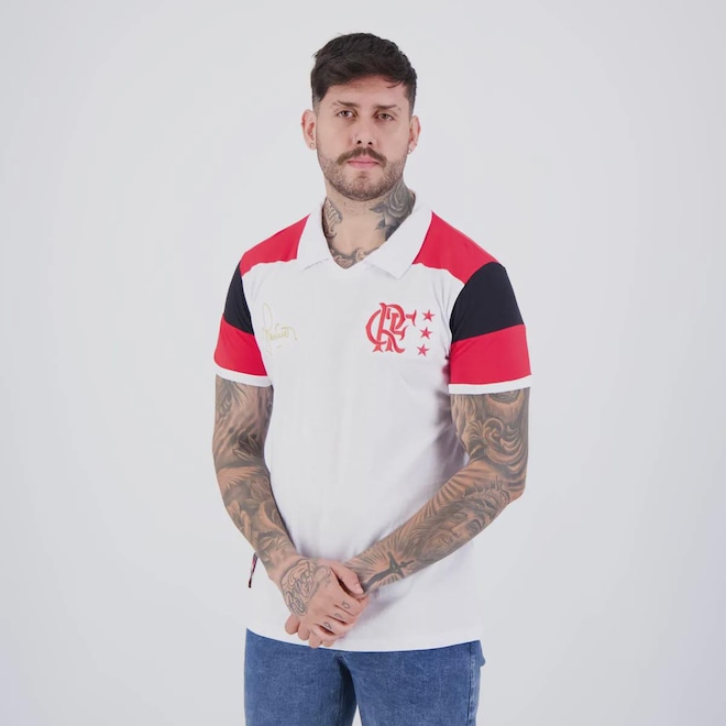 Composição: 100% AlgodãoCor predominante: BrancoIndicado para: CasualGênero: MasculinoOrigem: NacionalClube: FlamengoEscudo: BordadoManga: CurtaGola: PoloDimensões aproximadas (A x L):P: 72 x 52 cmM: 74 x 54 cmG: 76 x 56 cmGG: 78 x 58 cm