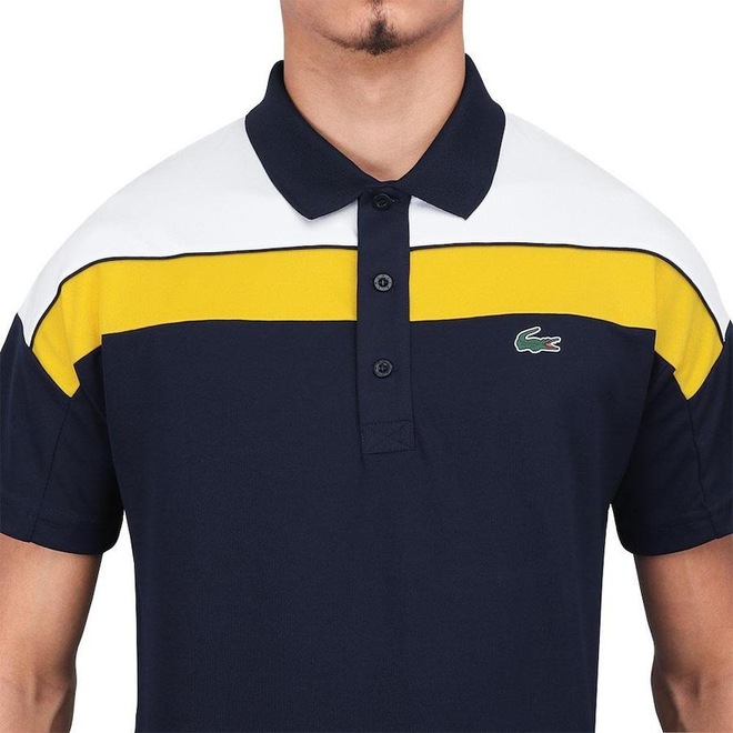 - Detalhamento: Camiseta manga curta, gola polo, peitilho com fechamento em botão, logo Lacoste aplicado na altura do busto no lado esquerdo, design moderno e elegante