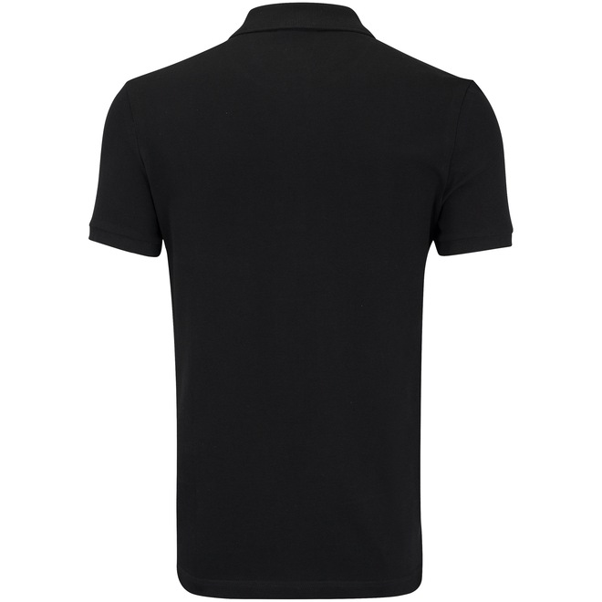 Possui mangas curtas, gola polo com ajuste frontal por botões e tira interna que protege do atrito junto à pele, além disso o logo da marca está bordado.