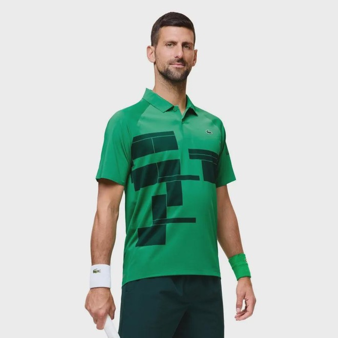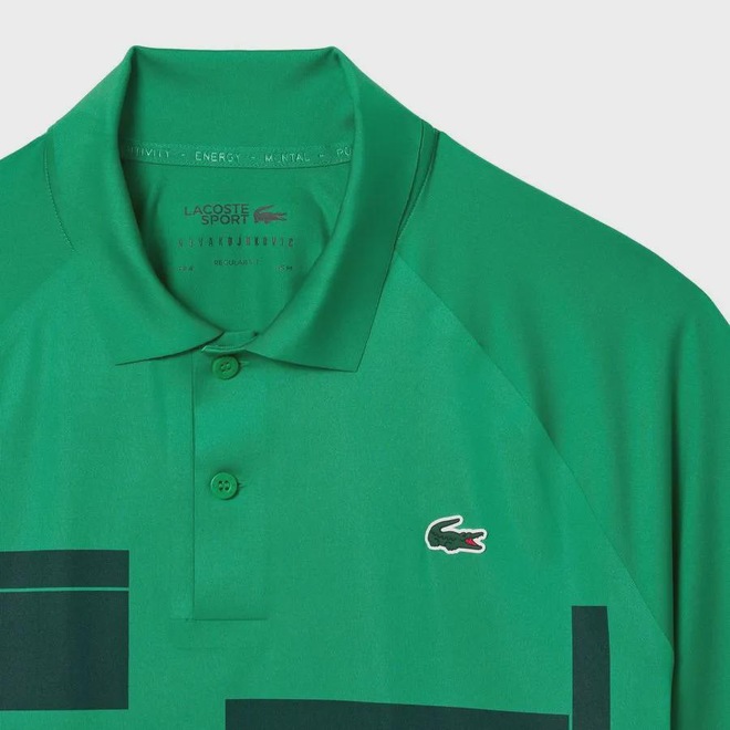 Esta camisa polo, desenvolvida com e para Novak Djokovic, é a que ele usa para performances que quebram recordes. O tecido ultraleve de 143 gr deixa você livre para esmagar. Com costuras termocoladas para garantir um acabamento sem atrito: tecnologia de campeonato para jogadores lendários. Tecido de Jersey de poliéster reciclado de sobras de fabricação. Malha elástica Ultra Dry para conforto e facilidade de movimento e crocodilo de silicone no peito.