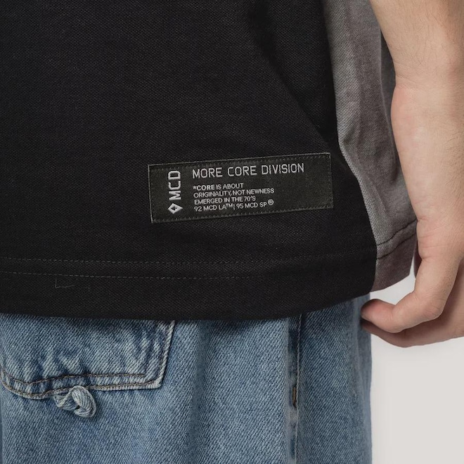 · Etiqueta more core Horizontal Bordada na barra costas.