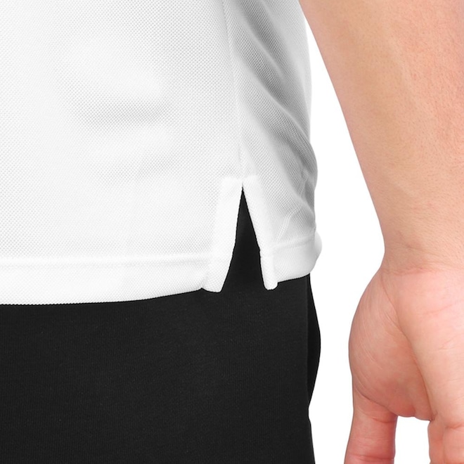 - Detalhamento: Camisa com gola polo, peitilho com fechamento em botão, logo Wilson centralizado na altura do peito. Possui detalhe com aplicação de faixa na parte frontal e na parte superior das mangas em cor contrastante. O tecido com microfuros proporciona leveza e respirabilidade. Fendas laterais garantem liberdade de movimento e caimento tradicional;