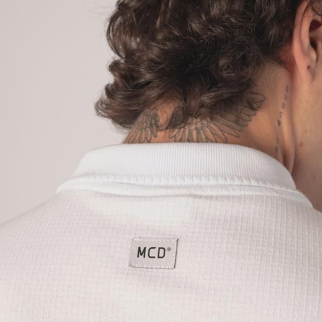 · Etiqueta traseira MCD aplicada abaixo da gola.