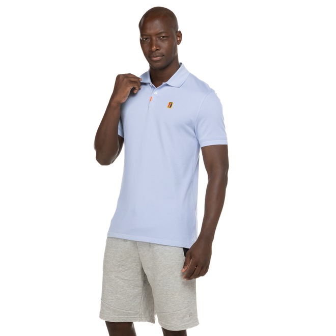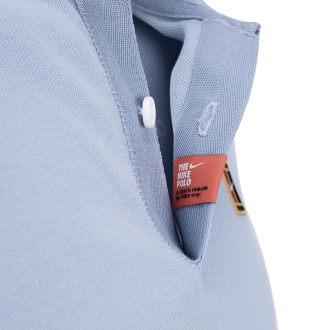 A camisa polo The Heritage Slim2 possui tecnologia Dri-Fit que garante maior respirabilidade durante o uso e MOVE TO ZERO, ação da marca para produtos mais sustentáveis.