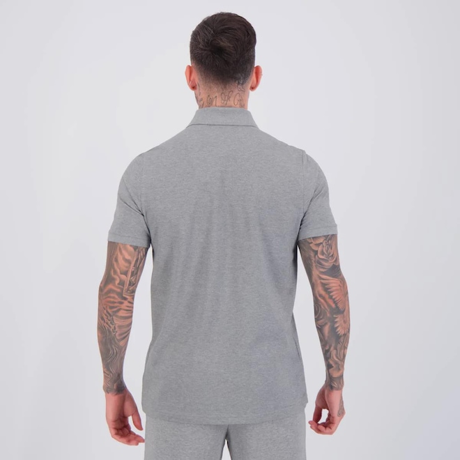 Composição: 96% Algodão e 04% Elastano Cor predominante: Cinza Origem: Importada Gênero: Masculino Logo: Bordada Manga: Curta Gola: Polo Dimensões aproximadas (A x L): P: 71 x 50 cm M: 73 x 52 cm G: 75 x 54 cm GG: 77 x 56 cm EG: 79 x 58 cm