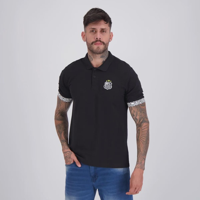 Composição: 50% Algodão e 50% Poliéster Cor predominante: Preta Indicado para: Casual Escudo: Bordado Origem: Nacional Clube: Santos Manga: Curta Gênero: Masculino Gola: Polo Dimensões aproximadas (A x L): P (S): 72 x 49 cm M (M): 73 x 51 cm G (L): 74 x 58 cm GG (XL): 76 x 62 cm EG (2XL): 78 x 67 cm