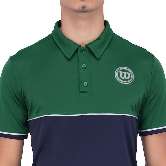 Descrição da Camisa Polo Wilson Tour League Marinho e Verde