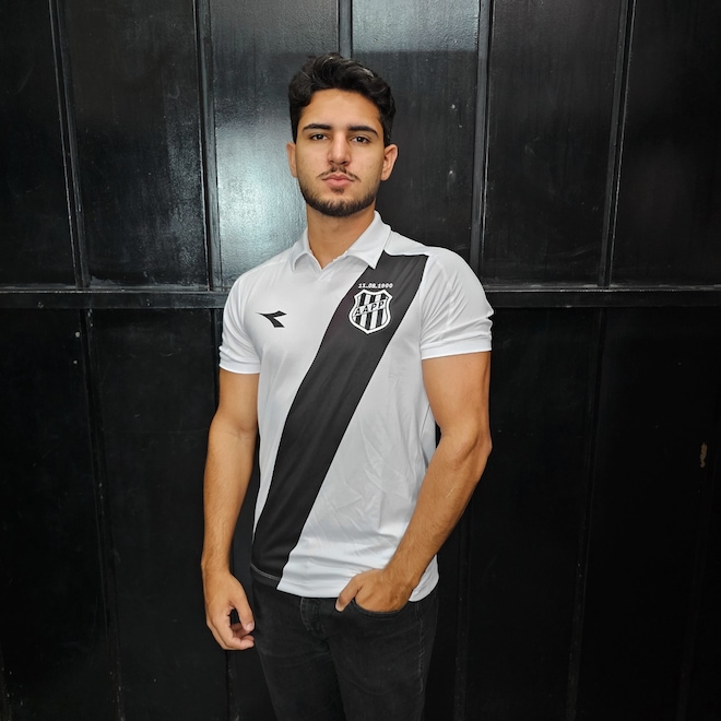 A camisa é uma homenagem à história e tradição da Ponte Preta, com design clássico inspirado nas modelagens italianas dos anos 90. Feita em tecido poliéster, oferece ventilação, conforto e durabilidade. Possui gola polo retilínea, mangas anatômicas e detalhes sofisticados como escudo e logotipos em alta definição. Combinando branco e preto, é versátil e ideal tanto para jogos quanto para o dia a dia, celebrando o amor pelo clube com elegância e inovação.