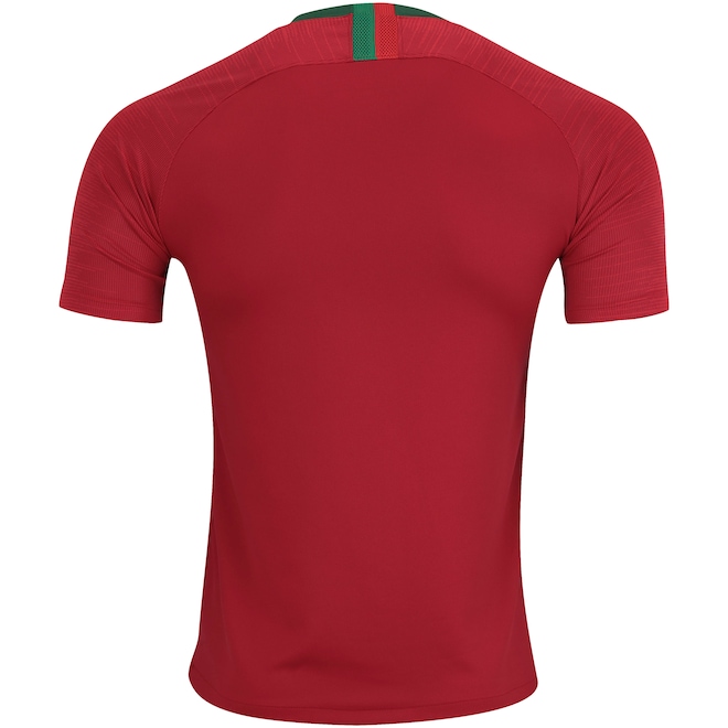 Para demonstrar seu amor pela seleção de Portugal, a camisa da Nike vem com a cor clássica vermelho escuro predominante que todos nós já conhecemos, além de possuir a gola verde em destaque, colocando o tradicionalismo português em primeiro lugar.